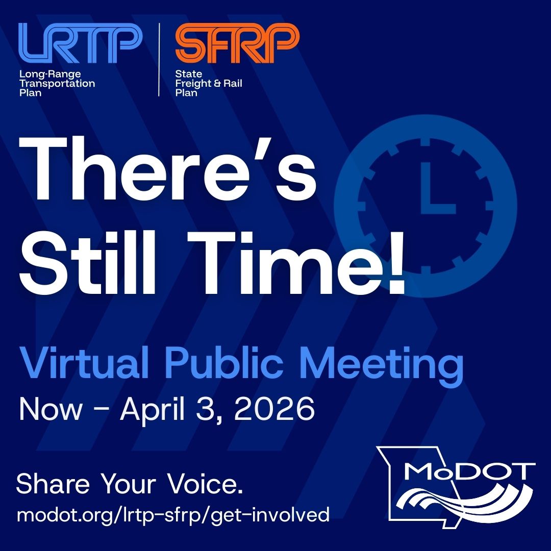 Until April 3rd! Attend and submit comments for MoDOT's 'Virtual Public Meeting' to help guide Missouri's Long-Range Transportation Plan [LRTP] update.