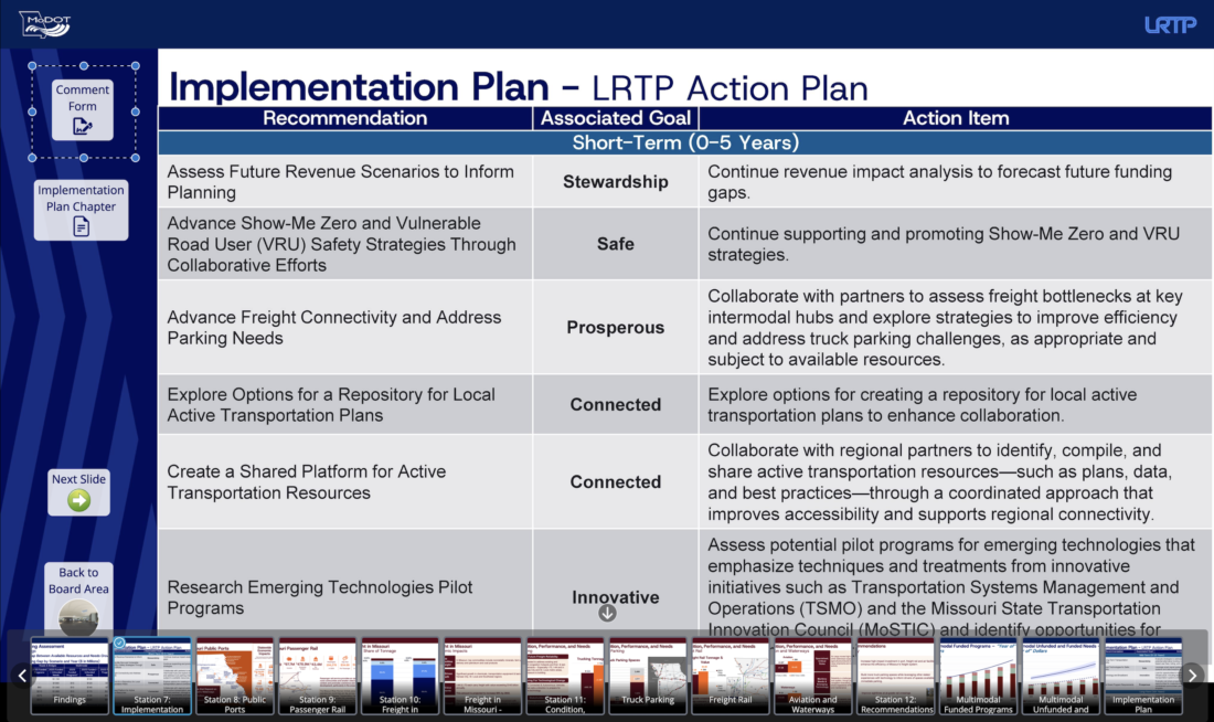 - We believe that it is appropriate to specifically call for Missouri to develop a statewide active transportation plan, which would incorporate several of the active transportation-focused goals outlined in the LRTP implementation plan.